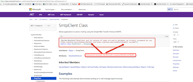 Hopefully my SmtpClient implementation review isn't too disappointing. I just don't know what to say about it, really. It's a pretty straight-forward send-command-wait-for-reply implementation and SMTP is pretty dead simple.
